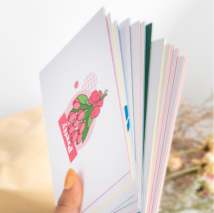 1.5mm thicker than your average postcard. Select from our wide range of vibrant colored edges.